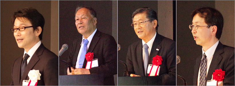 左から、澤邉教授、上總名誉教授、塚本社長、田中教授