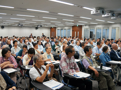 西田教授は、老化は生物にとっては生命活動の一環であること、寿命と老化の遺伝的プログラムや環境要因などについて話しました。また、食事制限による寿命の延長や、寿命を制限する液性因子などのメカニズムについても触れ、寿命と老化の仕組みや謎に迫る西田教授の講演に、来場者は興味深く耳を傾けていました。講演後には、会場から積極的に質問があり、活発な質疑応答となりました。