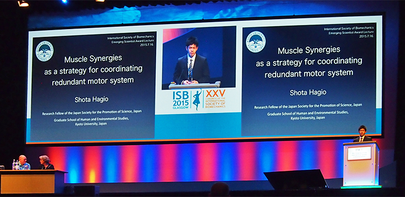 萩生博士課程学生の運動制御に関する学術論文(Hagio & Kouzaki, Journal of Neurophysiology 2014、Hagio et al, Frontiers in Human Neuroscience 2014、 Hagio & Kouzaki, Experimental Brain Research 2015)が認められ、International Society of Biomechanics国際学会(グラスゴー)にて受賞講演を行いました。