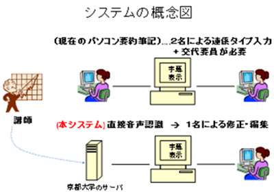 2016年度(平成28年度)から施行される障害者差別解消法では、障害者に「合理的配慮」を行うことが義務づけられています。大学等に在籍する障害学生数は年々増加しており、講義や学会等の講演会で情報保障を提供することが要請されています。聴覚障害者に対しては、要約筆記・字幕付与を行うことがこれに該当しますが、専門性の高い講演・講義の内容をリアルタイムに文字化できる人員(パソコン要約筆記者)は限られていて、各大学等ではその養成が課題となっています。