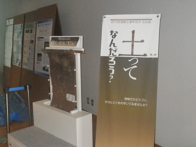 国際連合が定めた国際土壌年2015を記念して、地味だけどすごい土の魅力を紹介する巡回展示「土ってなんだろう?」を総合博物館で開催しました。本展は埼玉県立川の博物館が主催し、総合博物館のほか、地球環境学堂、農学研究科、日本土壌肥料学会および日本ペドロジー学会が共催しました。