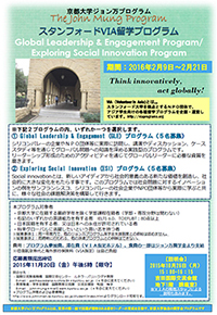 ※ 本プログラムは、京都大学生以外も参加するプログラムで、各プログラム全体の人数は25~30名程度です。