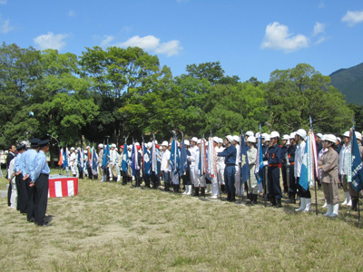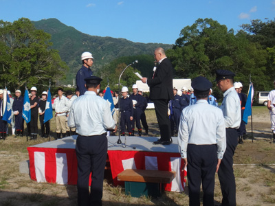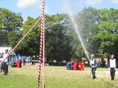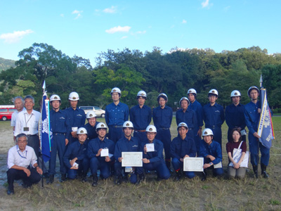 当日は、秋晴れの中、他の左京区管内の自衛消防隊と、日頃の訓練成果を披露するとともに自主防火・防災の重要性について再認識しました。