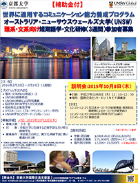 世界に通用するコミュニケーション能力養成プログラム オーストラリア・ニューサウスウェールズ大学(UNSW)理系・文系向け短期語学・文化研修への参加者を募集します。