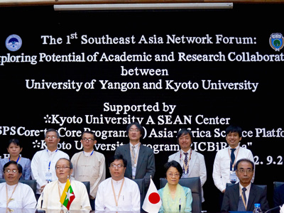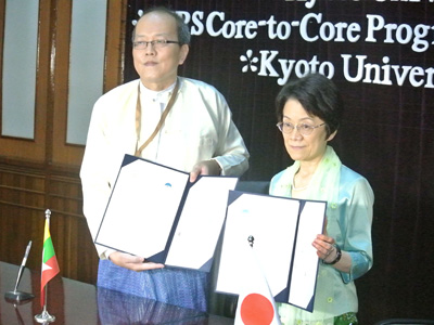 京都大学とヤンゴン大学(ミャンマー連邦共和国)との大学間学術交流協定締結式をヤンゴン大学構内のアーツホールにて行いました。