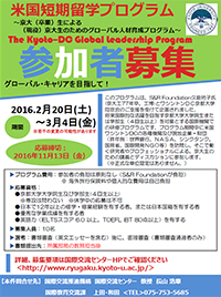 米国短期留学プログラム「Kyoto-DC Global Leadership Program」の2015年度の参加者を募集します。