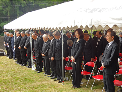 調査班は、原爆投下直後に軍の依頼を受けて医学部と理学部を中心とした教員、学生、看護婦らで結成され、9月3日からは大野村(現廿日市市)にある大野陸軍病院を拠点に原子病患者の治療および病理学的研究調査が、約50名になった調査班員により進められましたが、折しも「枕崎台風」と呼ばれる大型台風による大規模な土石流の被害に遭い、班員11名を含む156名が死亡しました。 慰霊は、例年被害のあった9月17日の直近の土曜日に自由参拝で行われていますが、2015年は5年に1度の式典開催の年にあたり、遺族をはじめ関係者を含む、約70名が参列しました。