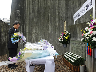 1945(昭和20)年、原子爆弾が投下された広島で被爆者調査、診療に当たっていた「京都大学原爆災害綜合研究調査班」は、同年9月17日に西日本を襲った枕崎台風による土石流の被害に遭いました。その犠牲となった方々を慰霊する集いを、広島県廿日市市宮浜温泉(旧大野町)の慰霊碑前にて行いました。