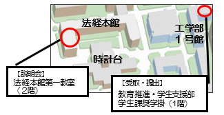 場所 吉田キャンパス本部構内、工学部1号館1階 教育推進・学生支援部学生課奨学掛 多目的室
