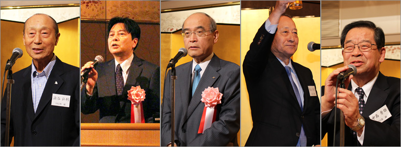 左から、澁谷会長、徳賀副学長、谷本名誉会長、熊谷副会長、中島副会長