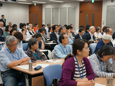 岩井教授は、女性や高齢者の労働力率や出生率などについて国際的なデータを比較しながら「日本の家族」の特徴について話しました。また、就学や就職、結婚、退職といった人生の出来事に伴う地位や役割の変遷や、若年層の経歴の不安定化などの現代の社会環境にも触れながら、これからの家族の姿についても話しました。来場者は岩井教授の講演を熱心に聴き、講演終了後には活発な質疑応答が行われました。