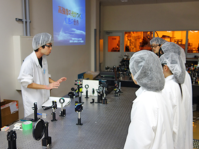 公開ラボでは、居住空間の地震時における状況を再現する「居住空間の災害を観る」や、レーザー光を操り瞬間的に一兆ワットものパワーが出る高強度レーザー装置の「高強度レーザーが作る虹色の世界」など、普段は見ることができない研究施設や実験室の公開などを行い、たくさんの最先端研究を紹介しました。