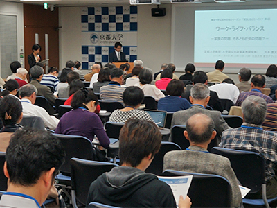 「家族」をテーマにしたシリーズ19の第4回は、「ワーク・ライフ・バランス -家族の問題、それとも社会の問題?-」と題し、久本憲夫 公共政策連携研究部教授が講演を行いました。