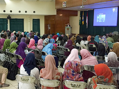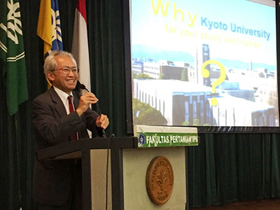午後は、本学への留学についての説明会が同キャンパス内講堂で行われ、主にIPBの農学部・林学部・農業工学部の学生350名ほどが参加しました。パネルディスカッション形式での質疑応答では、予定終了時刻を30分過ぎても質問が続きました。時間を気にせず質問ができる場として、IPBと農学研究科で共同運営するFacebookグループページの紹介もした上で、約3時間にわたる留学説明会を終えました。