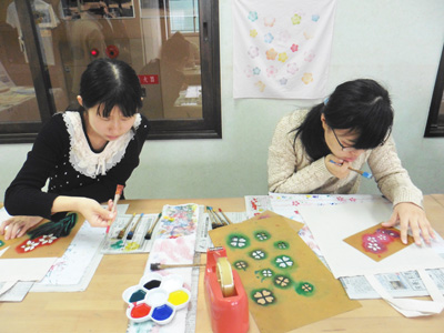 染色を体験する参加者たち