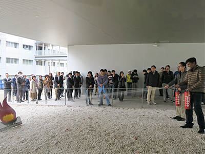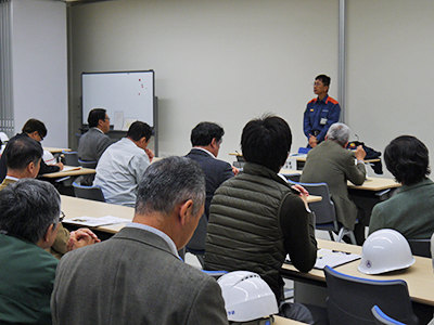 訓練終了後には、宇治地区世話部局長である寶馨 防災研究所長の挨拶、宇治市東消防署からの講評の後、消防署の方と自衛消防地区隊を中心とした参加者との意見交換も行われ、盛況のうちに終了しました。