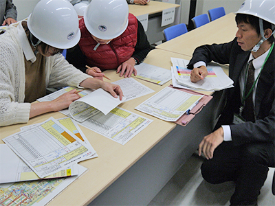 避難完了後は、宇治市東消防署の指導による消火器操作訓練も行い、参加者は熱心に説明を聞き、実際に消火器を手に取って消火活動を体験しました。また、宇治市東消防署による煙中体験訓練も行い、参加者は煙の中での避難行動の難しさを体験しました。