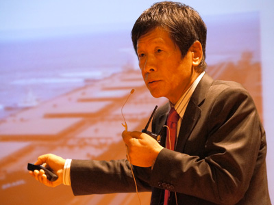 「世界をリードする日本の鉄鋼産業-もの造りの現場第一線から-」と題した講演の中で友野氏は、日本の鉄鋼業が歩んできた歴史的背景や、日本が工業化と標準化に成功し、世界をリードする存在となったことなどをわかりやすく紹介し、成功のためにはたゆまぬ技術イノベーションへの挑戦が必要であると語られました。