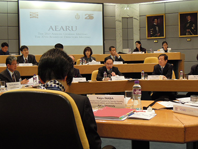 AEARUは東アジアにおける知の創造および学術交流の促進のために結成された大学協会で、日本・中国・韓国・香港・台湾の5地域・国から各地域を代表する18の大学が加盟しています。年間を通じて各種研究ワークショップ、学生サマーキャンプ等の事業を実施しており、年1回の総会には各加盟大学から学長・ 副学長が出席し運営等について討議を行います。