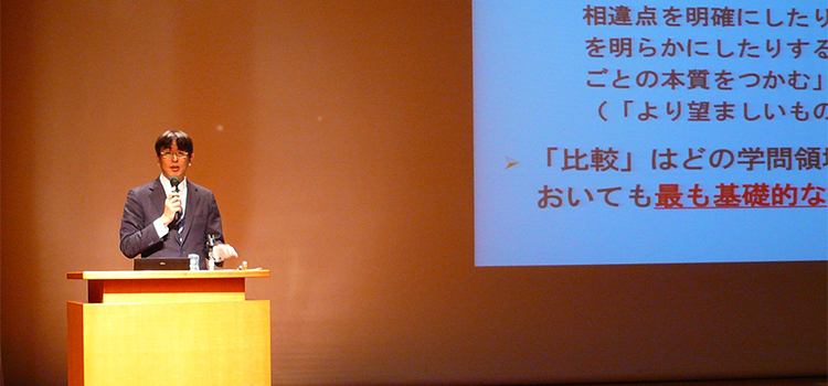 また、「大学入学者はどのように選ばれるのか - 国際比較から考える」と題して、南部広孝 教育学研究科准教授が基調講演を行いました。グローバル化が進展する中での世界基準の学び方や能力をいかに育んでいくのか、入試制度の比較とともに、高校生にも分かり易く多角的な講演となりました。