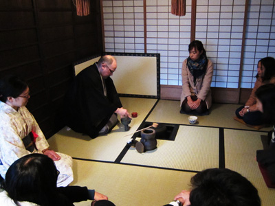 参加者の点てるお茶を準備するマイケル・シュミセク先生