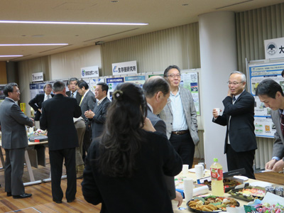 開会にあたり、宇治地区世話部局長である寶馨 防災研究所長が新年の挨拶を述べました。続いて、次期宇治地区世話部局となる生存圏研究所の渡邊隆司 同副所長の発声による乾杯の後、出席者は銘々に歓談し、新年を迎えた実感と賑やかな雰囲気の中で盛会のうちに閉会となりました。