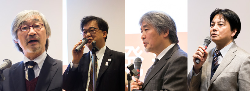 SPECでは、京都大学基金において寄附募集を行い、集まった寄附金から各プロジェクトの目標設定金額を支給します。寄附募集は、京都大学基金ホームページ内の「SPEC特設サイト」にて、クラウドファンディングの仕組みを活用して行っており、その方法について、徳賀芳弘 副学長より説明がありました。寄附募集期間は2016年3月15日まで。なお、同サイトでは、発表会でのプレゼン動画も公開しています。