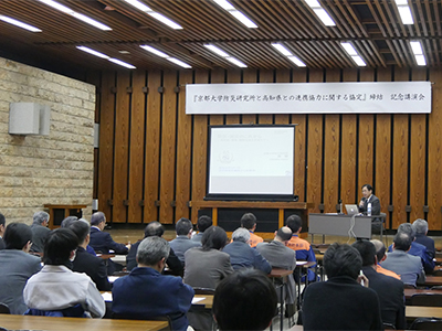 また同日、14時より高知県庁にて、寶所長が「防災・減災のこれから -超高齢・情報・国際社会を見据えて-」という題目で協定締結の記念講演を行いました。