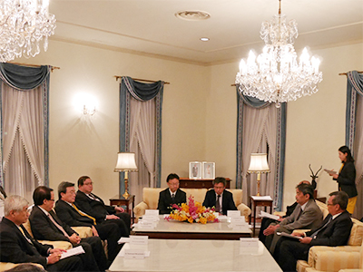 その後のレセプションでは、今後のASEAN各国との交流推進に向けた歓談が行われました。また、レセプションと並行してJASTIP事業に関する記者会見を実施しました。記者からは熱心に質問が寄せられ、終了予定時間を延長して河野研究所長ほか関係者による事業紹介がなされました。