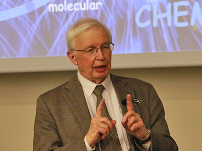 レーン教授は、複数の分子が共有結合しない状態で秩序立って集合し、弱い相互作用によって新しい構造を作り上げる「超分子」という概念の提唱者です。これは、分子の構造や機能は化学結合のみに依存せず、その分子の集合状態によって変わるというものです。レーン教授は、合成したクリプタンドという分子がイオンを選択的に取り込むという、分子とイオンの新しい構造体に関する研究により、1987年にノーベル化学賞を受賞しました。