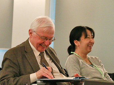 若手研究者と談笑するレーン教授