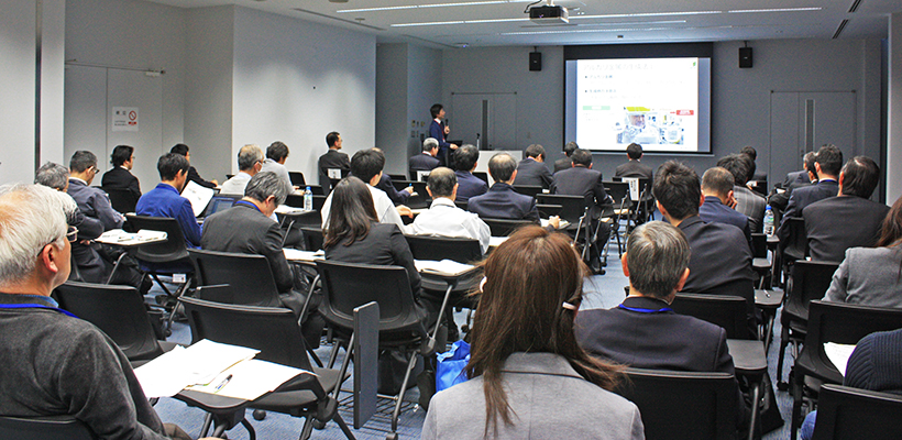 技術説明会では、「バイオイメージング」をテーマに、分子プローブ、生体磁気センサ等を専門とする4名の研究者が、研究成果を発表しました。その後の名刺交換の場では、多くの企業、機関の皆様と講演者との対話が長く続きました。参加者も、バイオ、センサ関連の企業の他、産学連携コーディネーター、医師など多様な方々の出席がありました。
