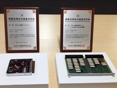 KDC-1論理パッケージは、矢島教授が退官後に大学文書館に寄贈し、保管されていましたが、このたびの技術遺産認定を受けて、学術情報メディアセンター北館3階の資料室で、FACOM 230-60のTTL論理回路カードなどとあわせて展示されることとなりました。
