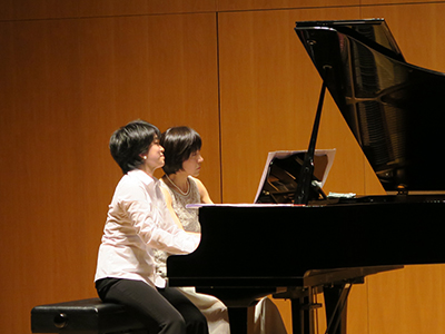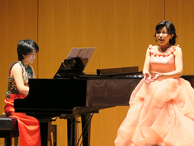 声楽の深畑氏の歌、ピアノの鈴木氏、山中氏の連弾等の演奏は、随所にトークを交えた親しみやすい内容で、来場者は、熱心に耳を傾けていました。