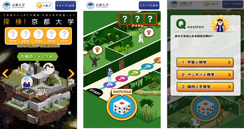 本学は、中・高校生向けに、本学ならではの魅力を紹介するゲーム型サイト「探検!京都大学」モバイル版を公開しました。