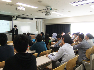 農学研究科では大学と産業界との連携を深めるべく、2011年度から毎年、民間企業から専門家を講師に招いて、講義を行っています。企業紹介や製品紹介を含め、産業界の視点から農業の課題や展望について講義が行われています。