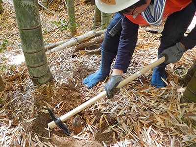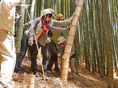 参加者はこの活動を通じて山の生態系や環境に関心を寄せるとともに、竹林保全やボランティアの意義について理解を深めていました。