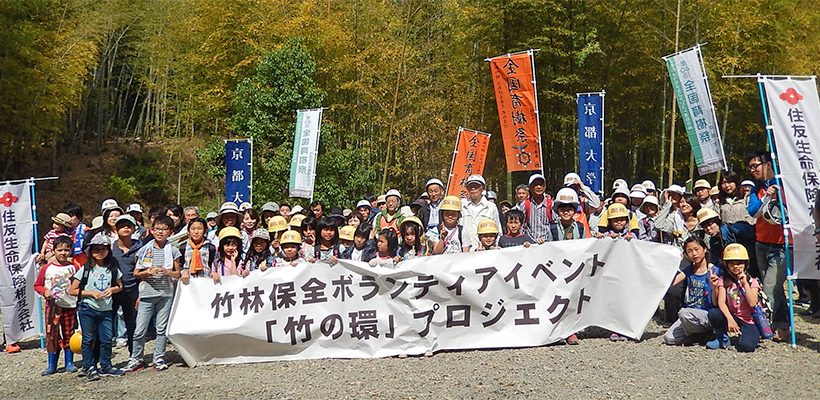桂キャンパスにおいて竹林保全ボランティア活動「竹の環プロジェクト」を開催しました。この「竹の環プロジェクト」は、桂キャンパスの竹林保全を通じて環境問題に取り組むボランティア活動で、京都大学、住友生命保険相互会社、京都モデルフォレスト協会および京都府が主催しています。