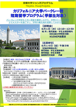 カリフォルニア大学バークレー校短期留学プログラムの参加者を募集します。