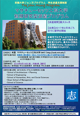 マサチューセッツ工科大学短期研究型派遣プログラムの参加者を募集します。