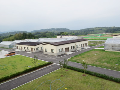 式典に先立ち、バスを利用して約25haの敷地を回り、太陽光発電などによる自然エネルギーを活用した環境負荷の少ない「グリーンエネルギーファーム」モデルを実証研究する約11haの圃場や温室などの見学を行いました。