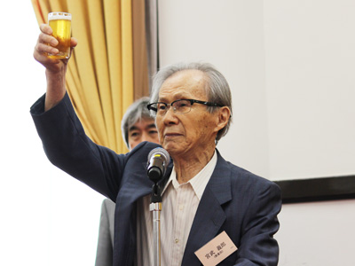 公開日 2016年06月30日 百周年時計台記念館国際交流ホールにおいて名誉教授懇談会を開催し、89名の名誉教授の他、総長、理事、副学長、部局長等あわせて125名が出席しました。 懇談会は、山極壽一 総長による本学の近況を交えた挨拶に続いて、宮武義郎 名誉教授による乾杯の発声により始まりました。 会場では、出席者それぞれの在職当時の思い出や出来事、近況報告等に話が弾み、盛会のうちに執り行われました。 挨拶をする山極総長 乾杯の発声をする宮武名誉教授 懇談会の様子