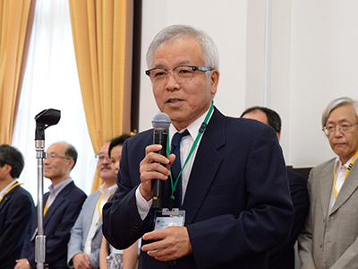 中締めの挨拶をする川添信介 理事・副学長