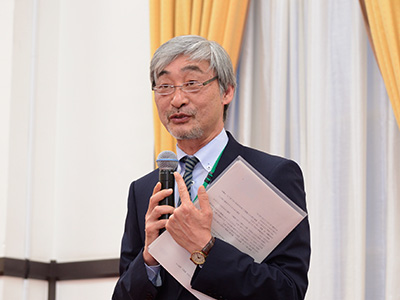 乾杯の挨拶をする阿曽沼慎司 理事
