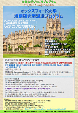 オックスフォード大学短期研究型派遣プログラム参加者を募集します。