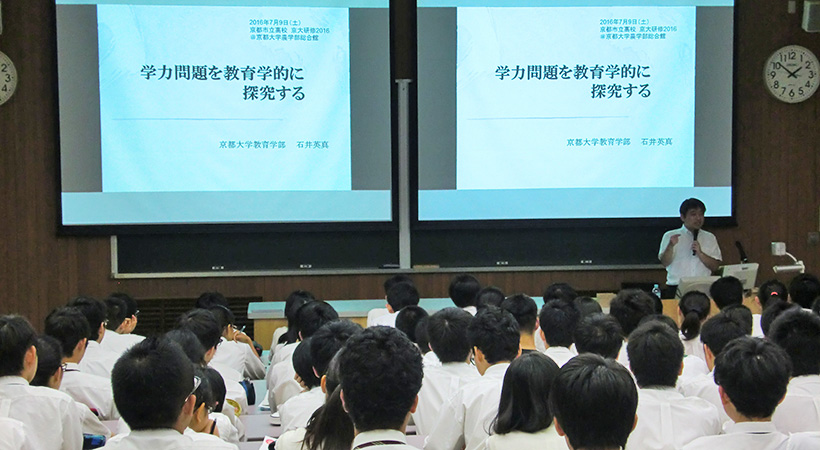 本学と京都市教育委員会との連携協定に基づき、「京大研修2016」を開催し、市内3校から約180名の高校生が参加しました。
