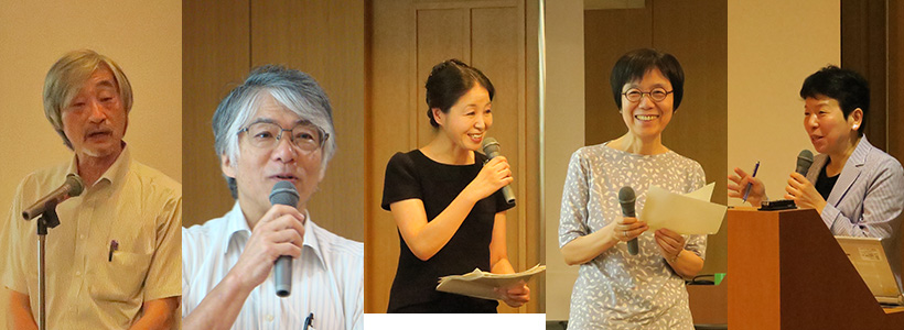 左から、川添理事・副学長、縄田教授、阪上准教授、森支援室長、有川センター長