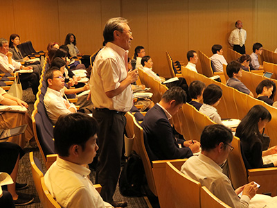 午後は三つのテーマ(「ヘルスケア」、「留学の学習計画と効果の最大化」、「キャリアデザインにおける留学の位置づけ」)に分かれ、グループディスカッションを行いました。どのグループでも活発な議論が行われ、最終のグループ発表は大いに盛り上がりました。阪上優 環境安全保健機構健康科学センター准教授の総括ののち、森眞理子 国際教育支援室長による閉会の挨拶では、ネットワークの今後の活動について言及され、ワークショップは盛会のうちに終了しました。
