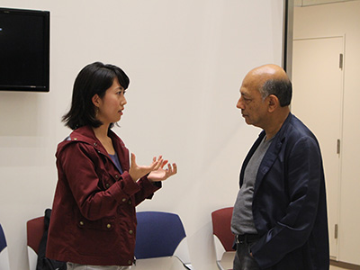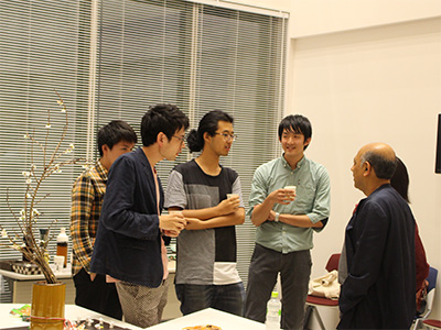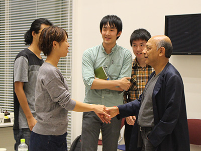 講演終了後は場所を移し、ドリンクを飲みながらフリートークを行いました。参加した学生たちは積極的にシン氏に話しかけ、終了時間になっても話は尽きず、シン氏は参加者1人ひとりに握手をし、感謝の言葉を述べて会場を後にしました。