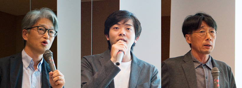 左から、講演をする高橋次長、北野チーフディレクター、富田教授